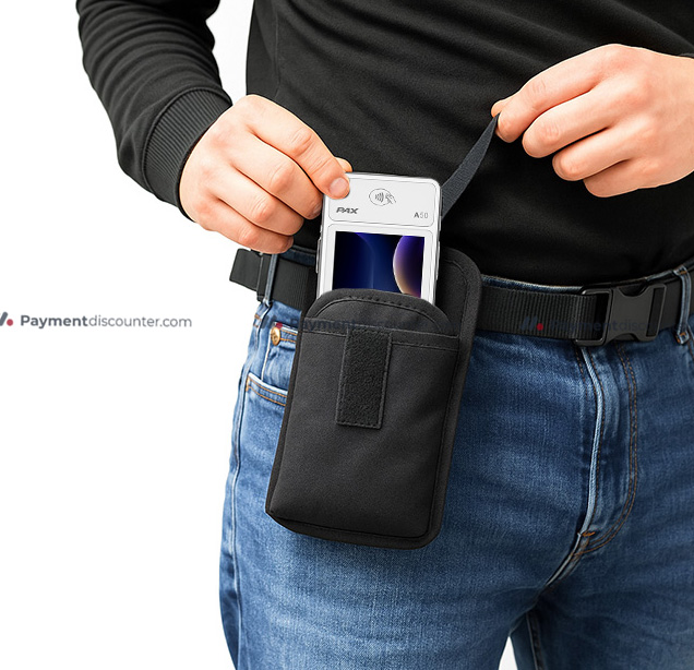 La PAX A50 Holster Compact ofrece una forma cómoda y eficaz de trabajar. Perfecta para cafeterías, restaurantes y eventos. Diseñada para terminales de pago de forma tradicional, combina durabilidad y comodidad.