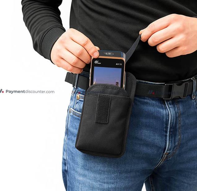 a funda PAX A910s Holster permite procesar pagos de forma eficaz y con las manos libres en restaurantes, cafeterías y eventos. Fabricada en resistente Cordura®, esta funda ultraligera de 75 g proporciona comodidad, estabilidad y durabilidad. Con una correa segura para el cinturón, portabolígrafos integrado y soporte opcional para la correa del hombro, es el accesorio perfecto para los terminales de pago de forma tradicional.