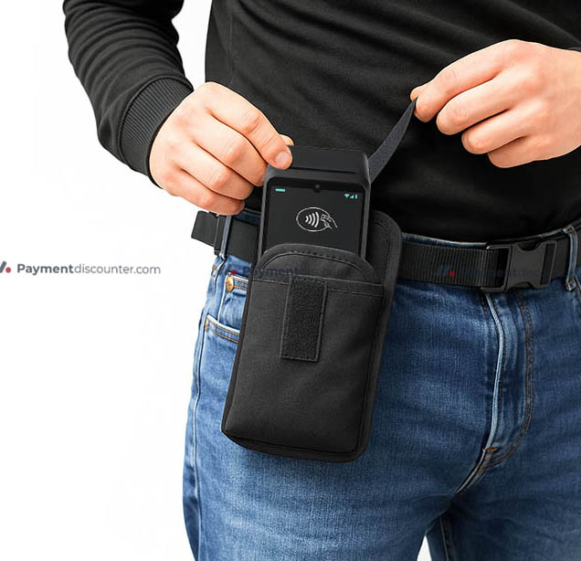 La fondina portatile Verifone Victa consente di trasportare a mani libere il terminale di pagamento in ristoranti, bar o durante gli eventi. Realizzata in tessuto Cordura® di prima qualità, unisce il comfort della leggerezza a una durata eccezionale.